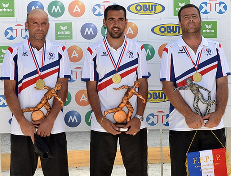 Après trois finales de Championnat de France Jeu Provençal perdues successivement, Anthony Kerfah a fini par battre la malédiction en remportant l’épreuve en Triplettes Jeu Provençal ce week-end à Canéjan (33), aux côtés de Tony Lafleur et Augustin Lafleur (PACA). L’édition 2014 a été marquée par des parties extrêmement disputées dans les phases finales, et par l’irréprochable organisation de la Boule Canéjanaise et du Comité Départemental de Gironde.