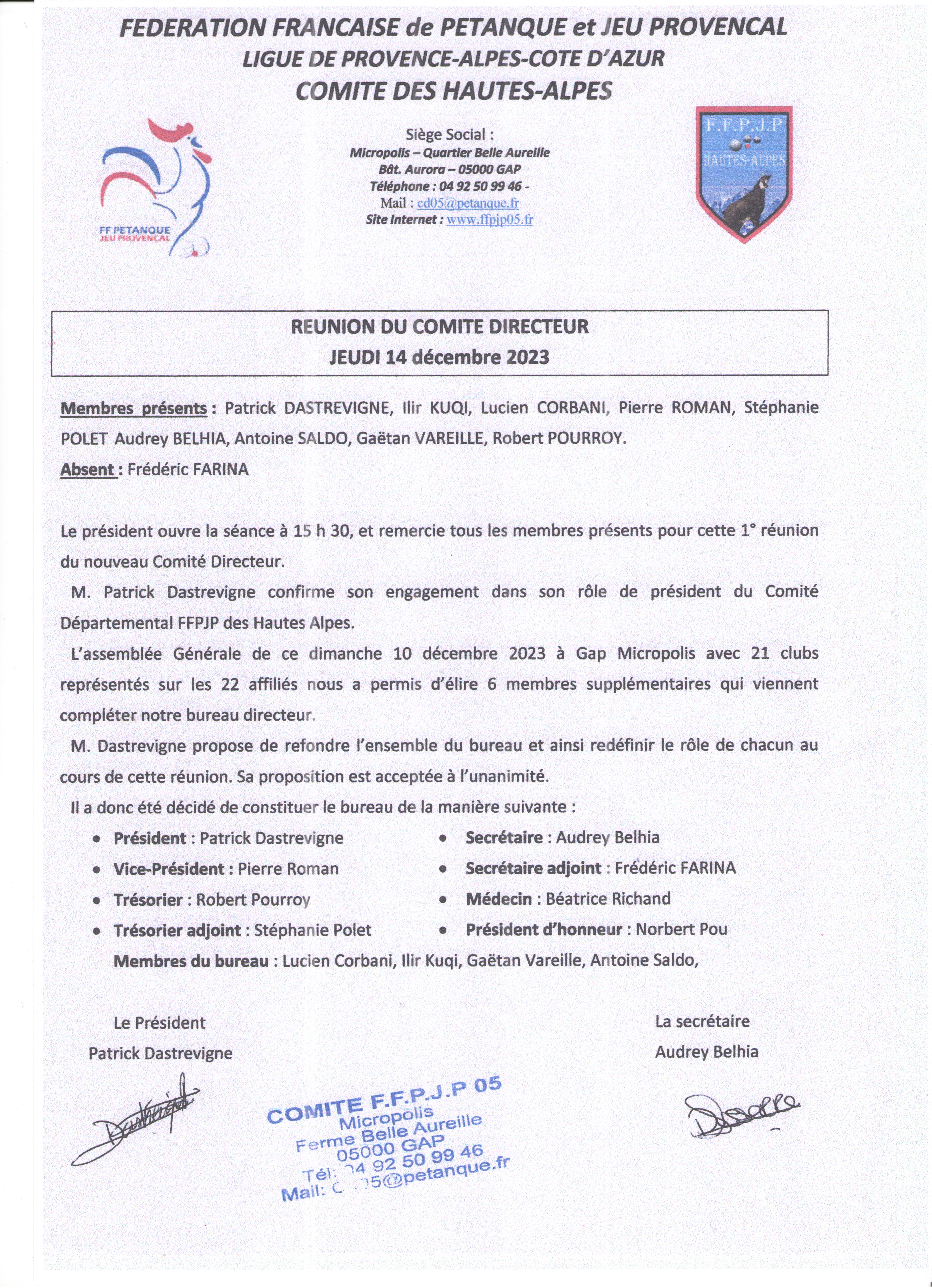 - Secrétaire adjoint : Frédéric Farina